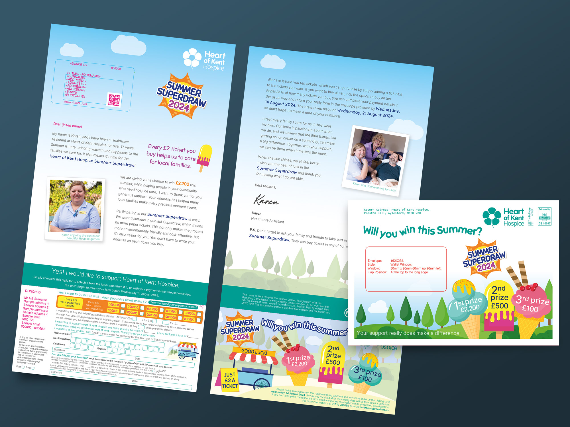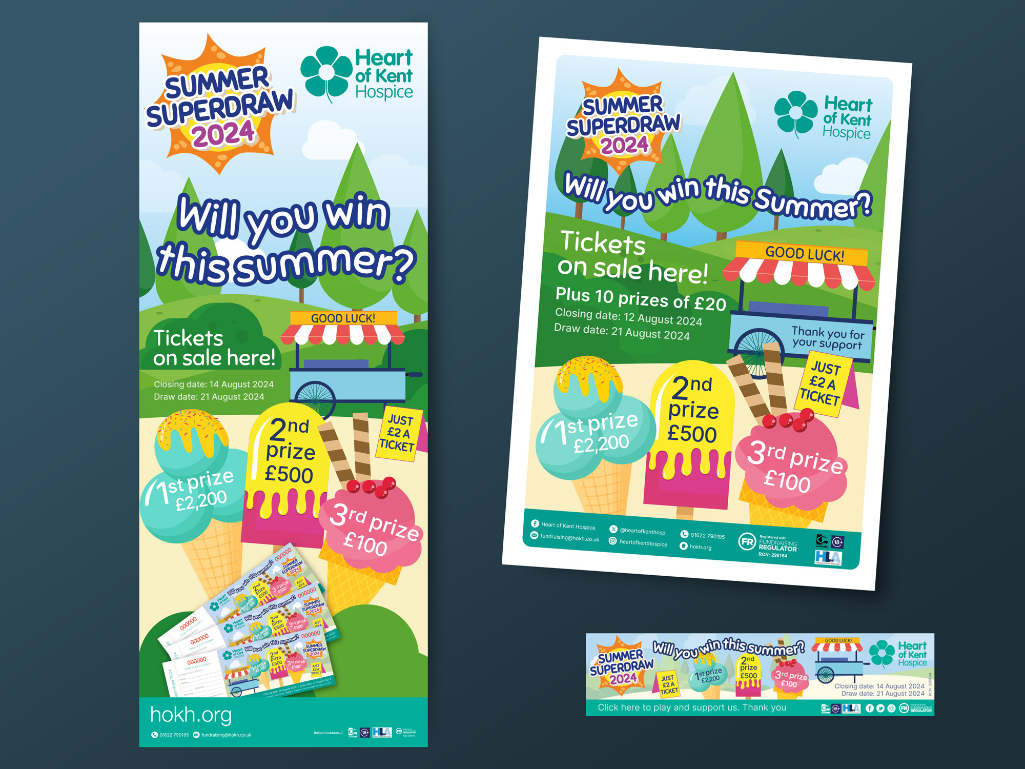 Project: To produce a bright and colourful, summery look and feel to promote the Summer Superdraw. To clearly communicate the prizes that could be won and highlight important information.
