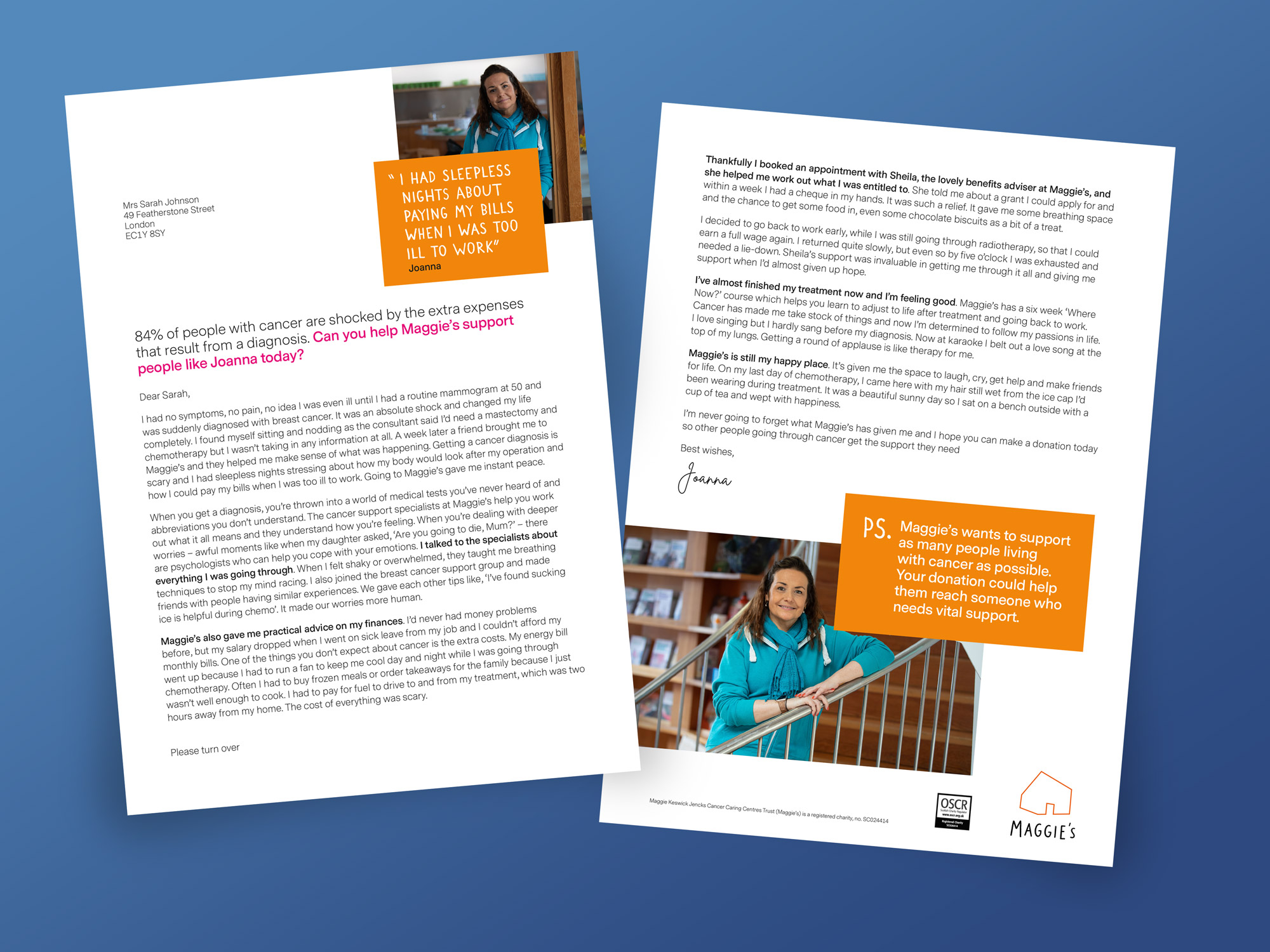 Background: This colourful direct mail pack had a very personal story at its heart. By focussing on a centre visitors real experience we were able to help donors empathise with the story tellers situation and show how their support can make a real difference.