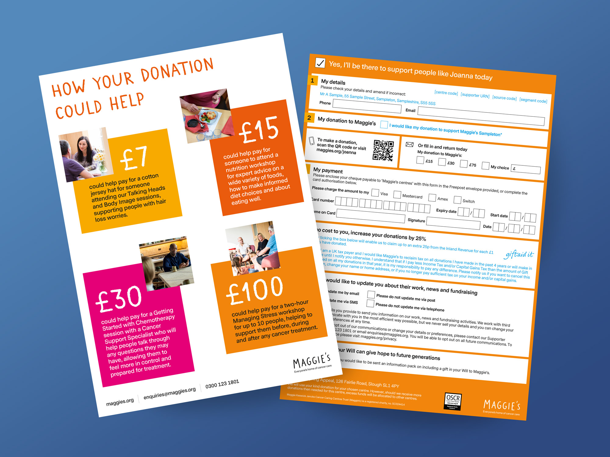 Project: The direct mail pack included a personalised letter, donation form, targeted donation examples, double gatefold leaflet and branded envelope.