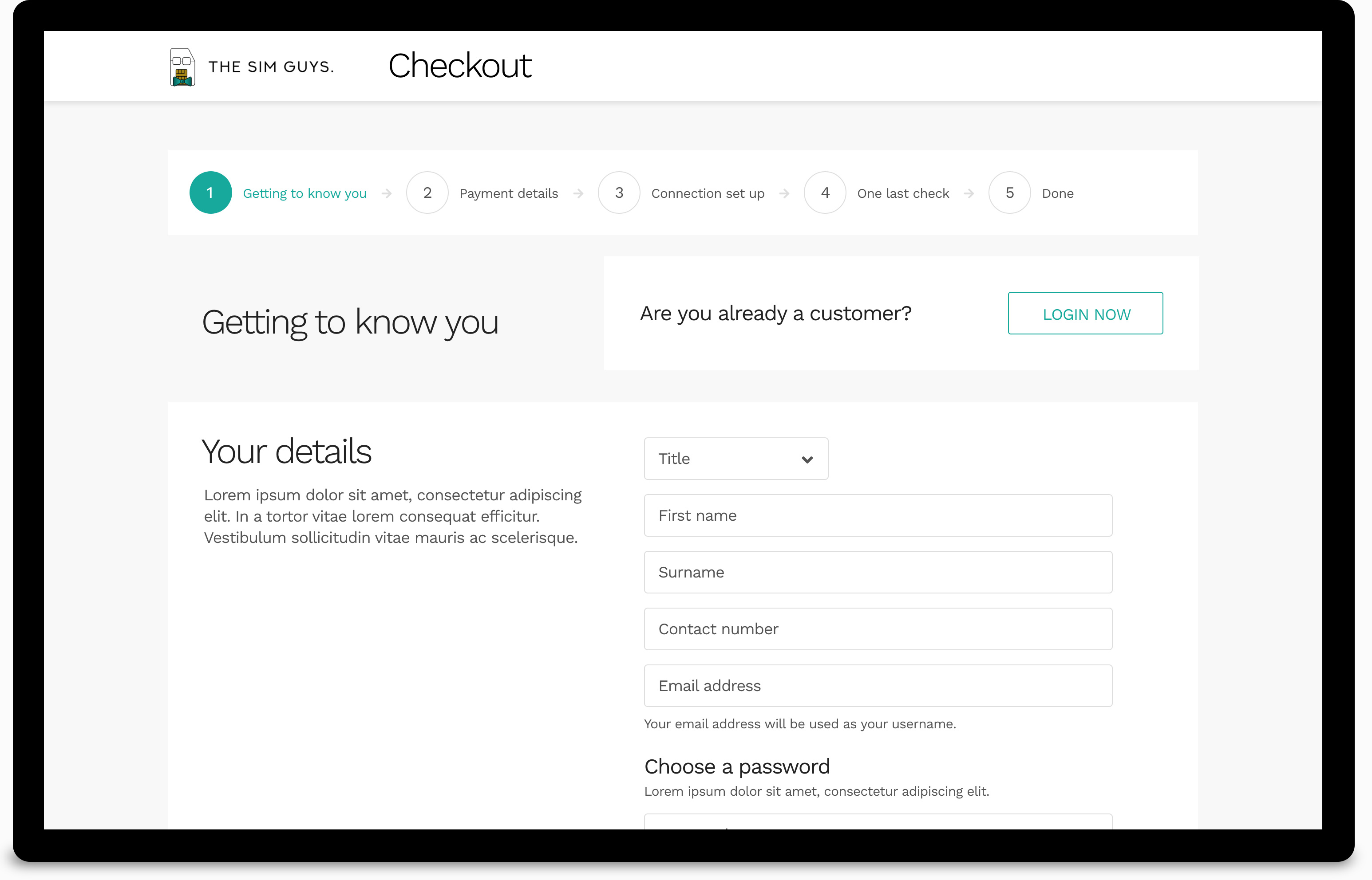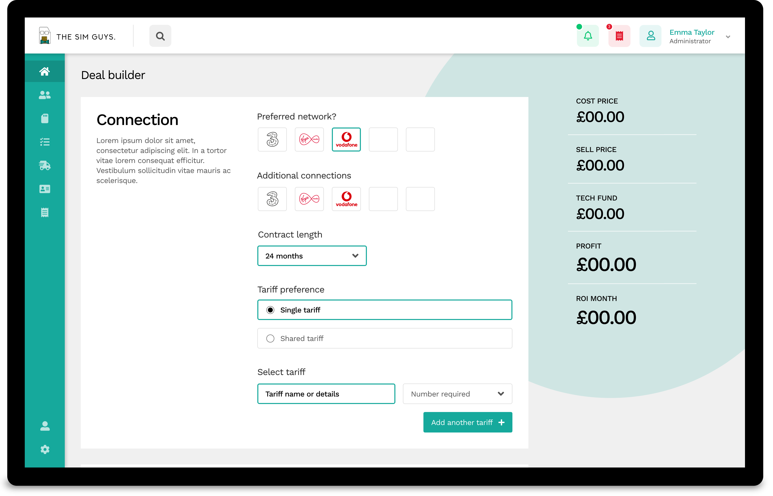 Background: The Sim Guys team were working with a development company to build the web application but the overall user experience and interface was awkward and overly complicated. The whole digital experience needed re-imagining from the ground up.