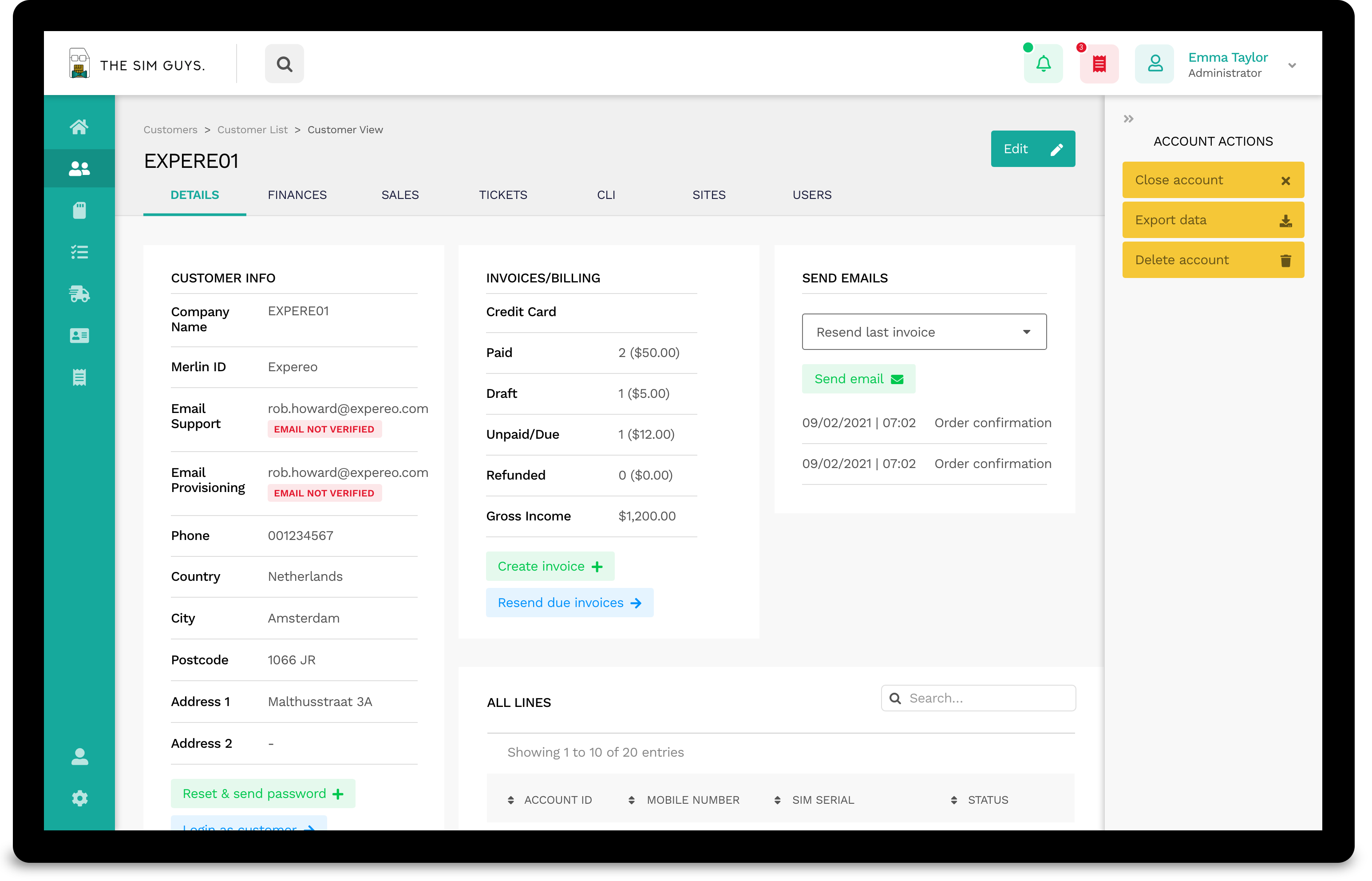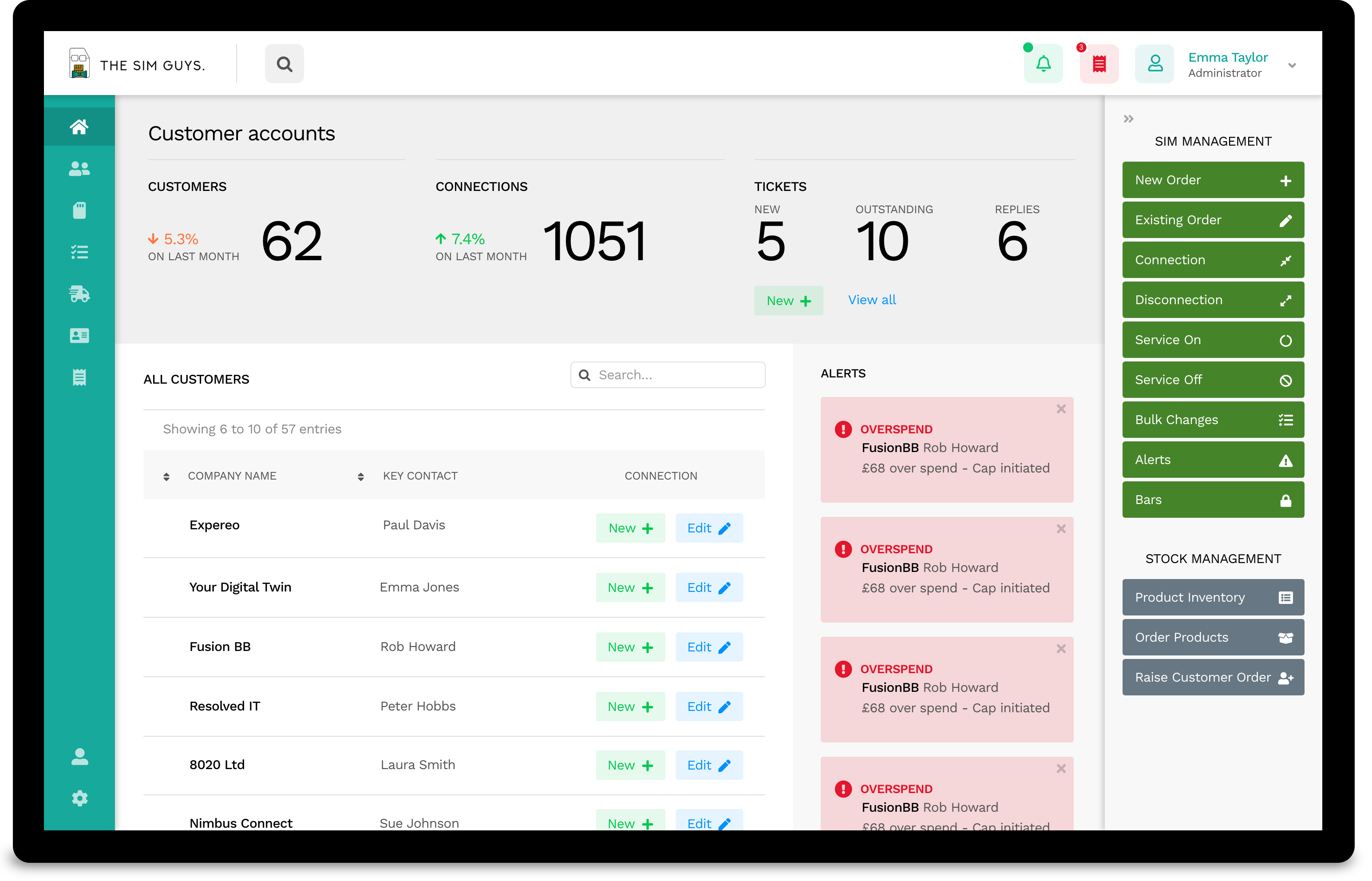 About: A white label B2B telecoms start up, creating a management portal including CRM system, SIM management, billing engine, e-commerce and ticketed support.