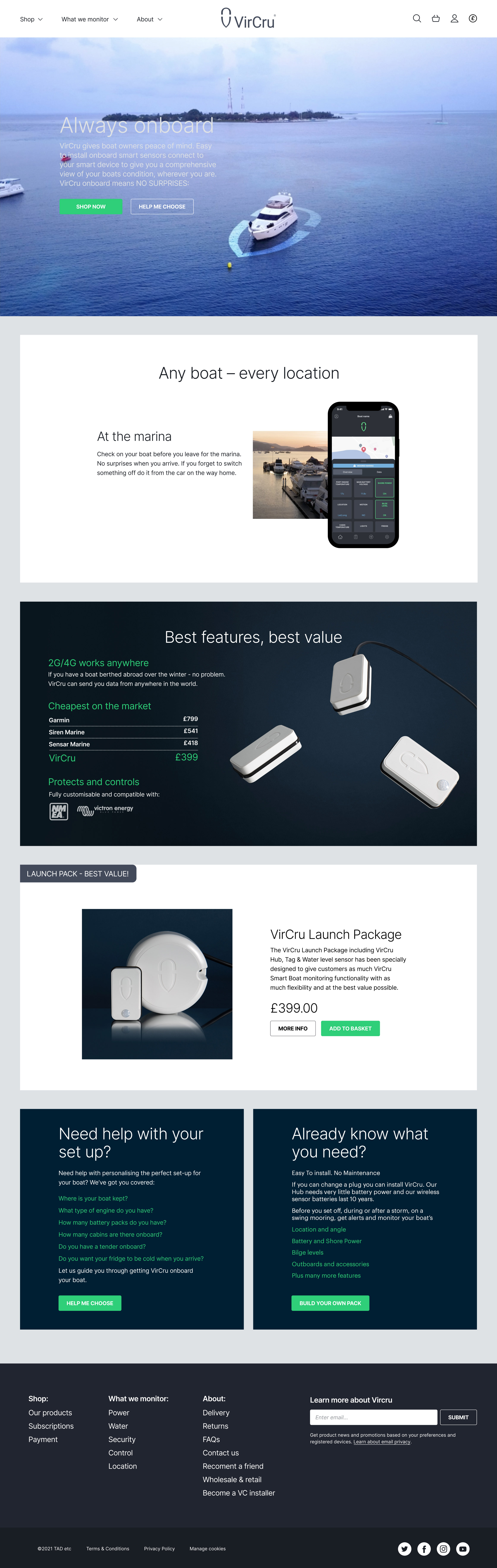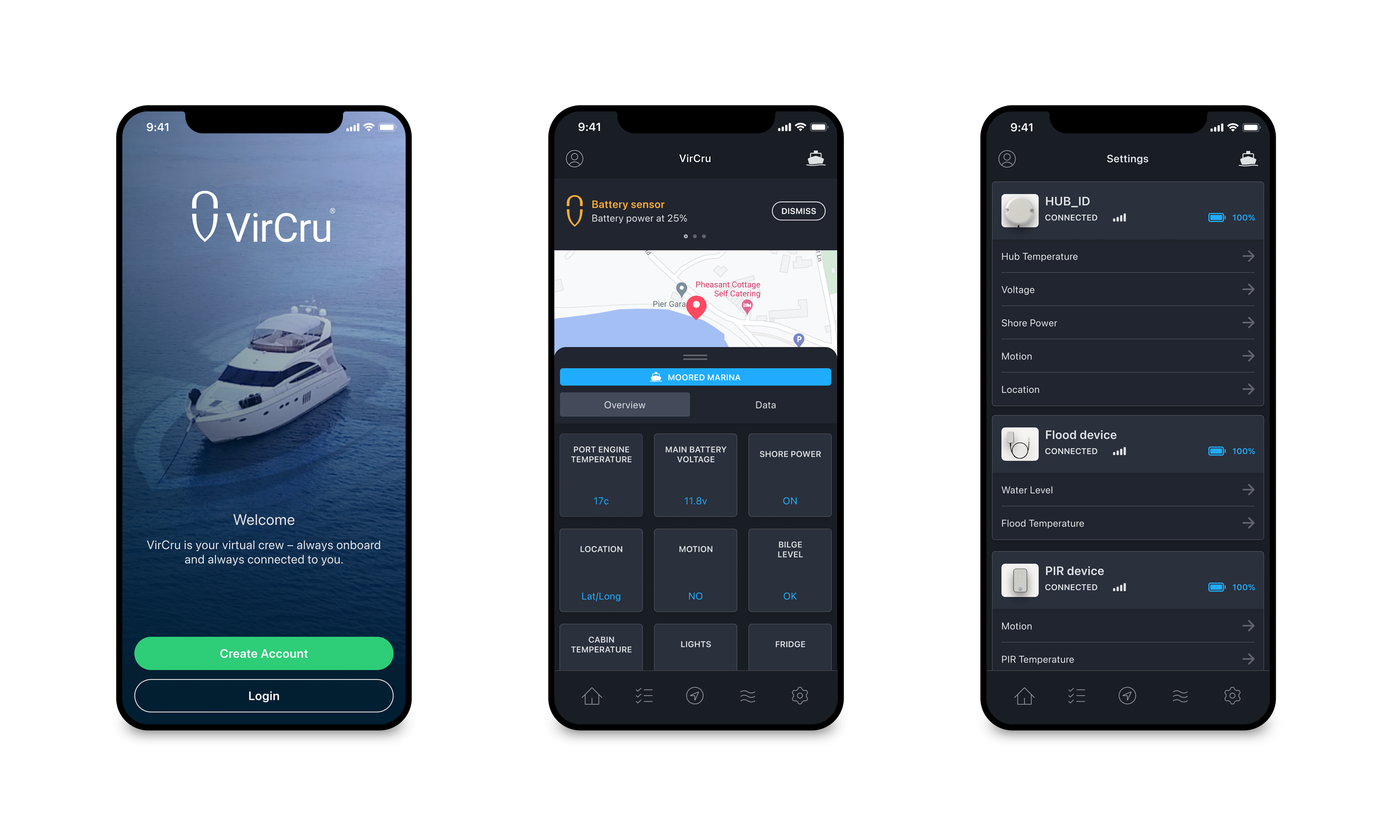 Background: When you're miles away from your boat the Vircru smart monitoring system keeps you connected 24/7; monitoring connected appliances, power, water, security and location.