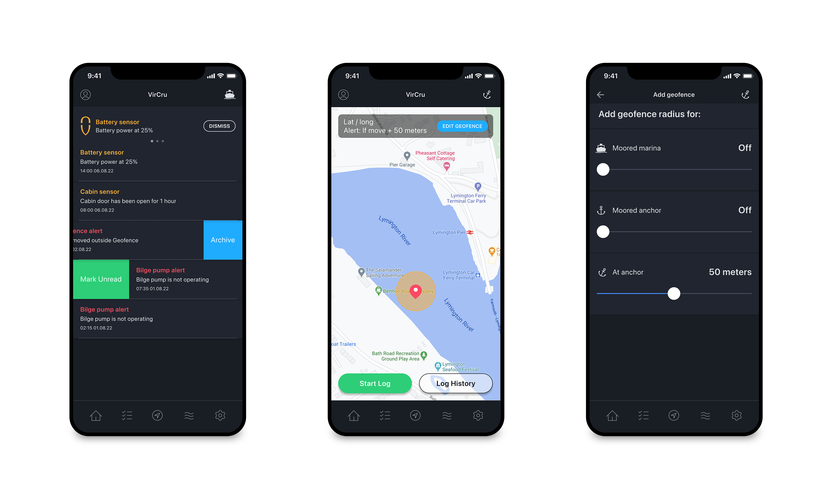 Urgent information is displayed via notifications with traffic light colour coding showing the status of your boat system. When onboard the boat the app UI switches to a journey tracking mode providing the user with an interface customised to their requirements.